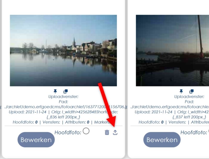 Het koppelen van foto's aan vensters gebeurt op de pagina "Fotobeheer". Bereikbaar via de knoppen boven het venster-kaartje en de beheerknop [Beheer foto's] in uw beheeromgeving.