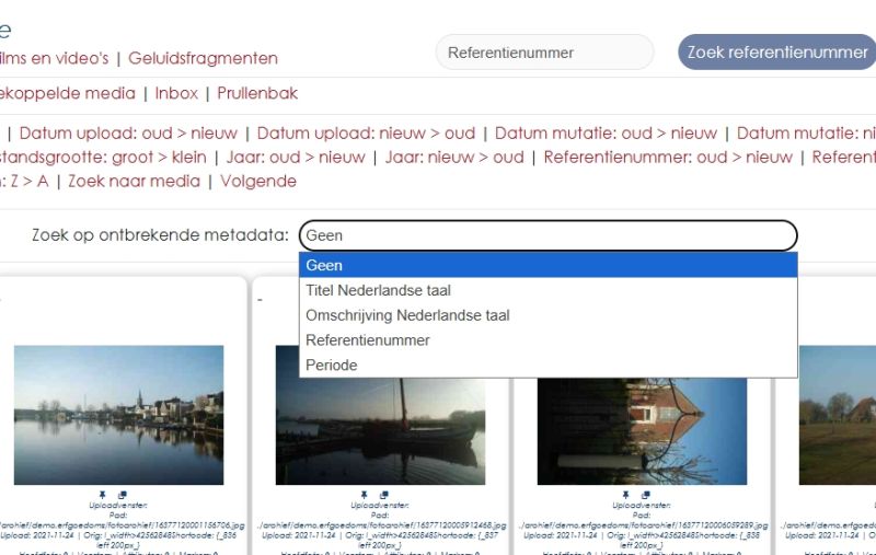 Op deze beheerpagina vindt u nu een overzicht van alle foto's die in het archief zijn opgenomen via de bulk-upload. Binnenkort komt er ook een Mediagrid voor primaire vensterfoto's, films en PDF-documenten. U kunt de foto's sorteren op naam, datum en grootte.
