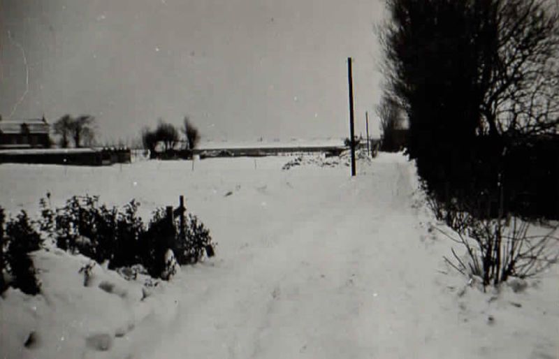 Een dik pak sneeuw bedekt de bestrating van 't Boonrak in de strenge winter van