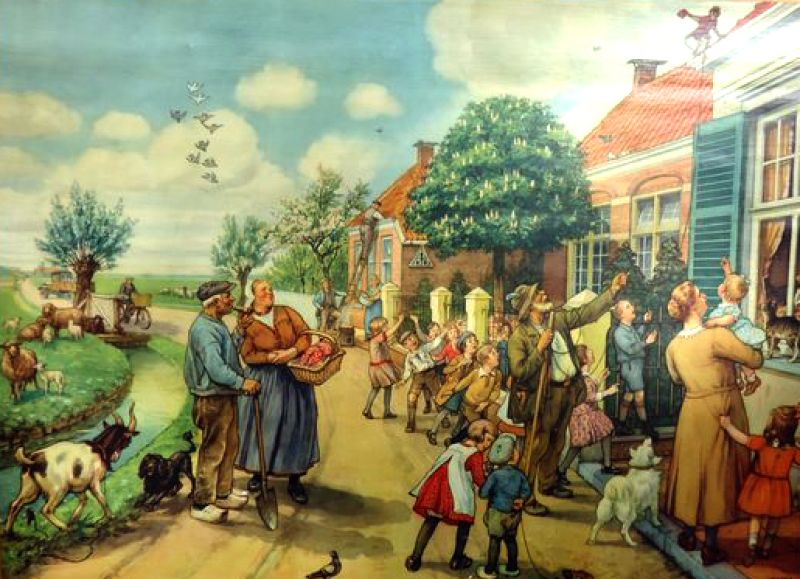 Ik herinner me de eerste schooldag (nu al bijna 70 jaar geleden) als de dag van gisteren. Bijna alle kinderen huilden, wellicht ook omdat juf Nederlands (" Hollansk") sprak, terwijl zij thuis Fries spraken. Ik had het geluk dat wij in ons gezin thuis Nederlands spraken en was meteen gewend aan juf, die heel lief was. Bovendien vond ik het héérlijk om eindelijk naar school te gaan, want 'k was erg leergierig, vond zingen fijn en de verhalen die verteld werden pràchtig! Alleen jammer dat we geen gymnastiekles kregen, maar dat haalde ik na schooltijd ruimschoots in met touwtje springen, klimmen en klauteren en slootje springen.