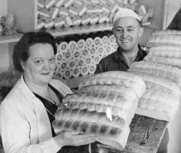 Ik ben daar een dik half jaar geweest want toen kocht heit de Centrale Bakkerij over en moest ik thuis meehelpen. Toen verdiende ik f 7,50 per week, nou ja, verdiende, het was meer een zakcentje. Met Annie ging het eigenlijk precies eender, die heeft altijd zonder loon in de winkel gestaan, het hoorde gewoon bij haar taak. Daar hoef je vandaag de dag niet meer mee aan te komen, nu willen de vrouwen niet meer voor niets in de zaak meewerken (en gelijk hebben ze). Dat hebben wij later zelf met Rudolf anders gedaan, als hij ons hielp in de bakkerij dan kreeg hij daar een goed uurloon voor.
