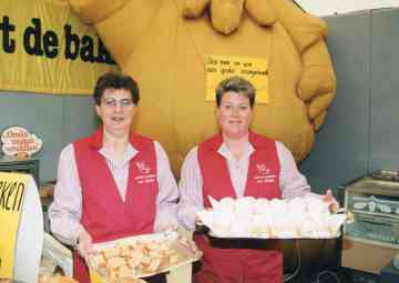 Wij hebben onszelf de laatste jaren ook een strak schema opgelegd, Durk en ik. Wij bakten natuurlijk alle dagen brood maar daarnaast deden wij alle dagen wat anders. Dat ging dan in de vriezer en alle dagen werd er uitgehaald wat nodig was. Zo hadden we dinsdags alle soorten (oranje)koek, meestal vier platen vol. Woensdags maakten we roggebrood en het beslagwerk voor het gebak. Roggebrood moet wel 12 uur in de oven, in die tijd kon je de oven nergens anders voor gebruiken. Donderdags de krenten- en het suikerbrood en de rest van het beslagwerk. Vrijdags was het tijd voor de luxe broodjes en werden de taarten enz. afgemaakt met slagroom en zo. Wij werkten meestal ook niet langer dan tot 12 uur, half één, eerder was dat vanzelf wel tot zes uur. Als je dat zo bedenkt en berekent dat wij elke week minimaal 55 uur werkten en dat 47 jaar lang, dan betekent dit dat wij in uren wel 6 jaar langer gewerkt hebben dan iemand die ook 47 jaar lang werkte, maar dan 40 uur per week.