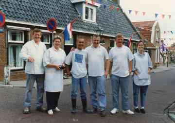 Zo’n 12 jaar hebben we mee gedraaid in de Versmarkt in Dokkum, slager Weidenaar, groenteman Tsjalling Feenstra, kaasboer Prummel en Multiflora deden ook mee. In die tijd hadden we wel alle weken een advertentie in de krant. We werkten toen met z’n drieën als broers en hadden twee man personeel, begonnen ’s morgens om half drie want het bakproces duurde 3-3½ uur en om het brood op tijd in Dokkum te krijgen moesten we vroeger beginnen. Vrijdagsavonds begonnen we al om negen uur om alles voor de zaterdag klaar te maken. Dat was ook de tijd dat wij een zwaarwegend besluit moesten nemen: gaan we zo door, dan moeten we uitbreiden, anders moeten we krimpen met onze klanten. Langzamerhand vielen de kleine supermarkten in de dorpen bij ons weg, overgenomen door de grote broodfabrieken. Wij hebben toen het besluit genomen dat we het wat rustiger aan zouden doen, het eiland Schiermonnikoog met al z’n zomerdrukte zegden we op en de Versmarkt stapten we uit.