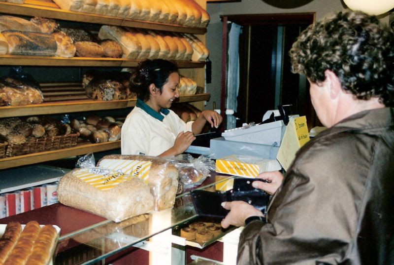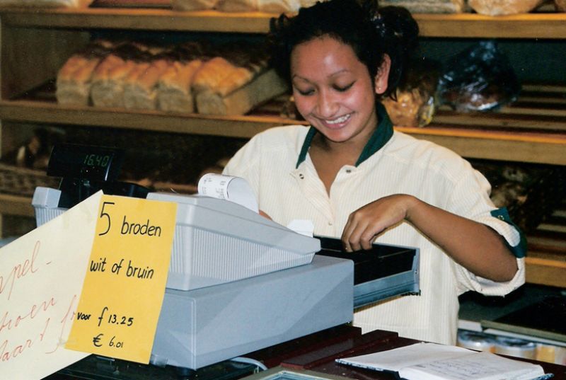 De eerste die ons in de winkel hier geholpen heeft, was Tieteke Feenstra (nu Tieteke Faber), zij kwam op zaterdag toen ze van school was. Later zijn er nog heel wat anderen geweest: Ria Bosgra, Akkie Weidenaar, Ineke Post, Gerrie van Driesum, Doutsje Lawerman, Tiny Talstra, Janet Postmus, Janneke Weidenaar, Jannie Visser en in de laatste periode Nicole van der Mossel en Thea Rozendal. Dochter Rosalyn heeft ook een tijdje geholpen, dat was vanzelf prachtig: mem en dochter samen achter de toonbank! Gerrie van Driesum stond hier in de winter fan 1979 toen er zoveel sneeuw was gevallen dat er een crisiscentrum in Eanjum gevormd werd en het brood met de kraan fan Frans Postmus naar Easternijtsjerk werd gebracht. Daar hebben wij niets van gemerkt want wij zaten op de Canarische Eilanden!