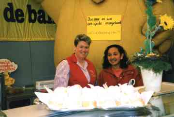 Ineke Post hielp ons ook toen wij Rudolf ophaalden uit Indonesië. Hij was drie maanden oud, woog zeven pond en moest van ver komen: hij had allemaal kroep in het begin. Wij zijn toen 10 dagen in Indonesië geweest, kwamen op dinsdag met Rudolf thuis en op donderdag stond Annie al weer achter de toonbank, dat had anders gemoeten, achteraf bekeken, maar dat ging toen zo, begeleiding zoals vandaag de dag was er toen niet bij. Het kwam wel voor dat mensen zeiden: “Wat heb jij daar achter de toonbank, Annie?” Dan stond Rudolf of later Rosalyn, ons tweede aangenomen kind uit Indonesië, achter de toonbank in een zitje omdat ik klanten moest helpen. Ze konden ook al snel zelf drinken want dan legde ik een handdoek er onder en dan redden ze zichzelf.