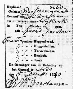 >>Bewijs van uitvoer naar Nijkerk 5 dec. 1840
