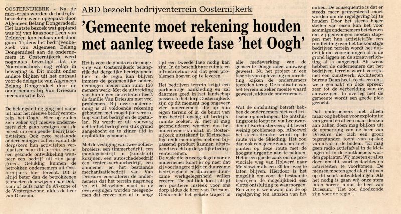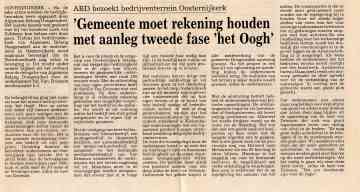 Enkele plaatselijke ondernemers hebben zelf het bedrijventerrein plan tot in detail uitgewerkt, kopers gevonden en de exploitatie rond gemaakt. Pas toen heeft de gemeente het plan overgenomen en uitgevoerd. Deze werkwijze is mijns inziens ook de enige mogelijkheid om een uitbreiding fase III van ’t Oogh gerealiseerd te krijgen. De oorspronkelijk plannen hebben, door steeds weer compromissen te sluiten, nogal in kwaliteit ingeboet. In de volgende ’t Oogh fase(s) hoop ik dat dit niet weer zal plaatsvinden en misschien zelfs dat het bestaande terrein iets/flink opgewaardeerd mag worden.