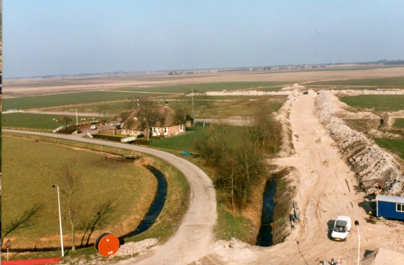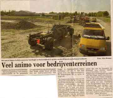 foto op voorpagina Dokkumer courant. De fundatie van de complete weg ligt er al. We kunnen onze percelen bereiken.