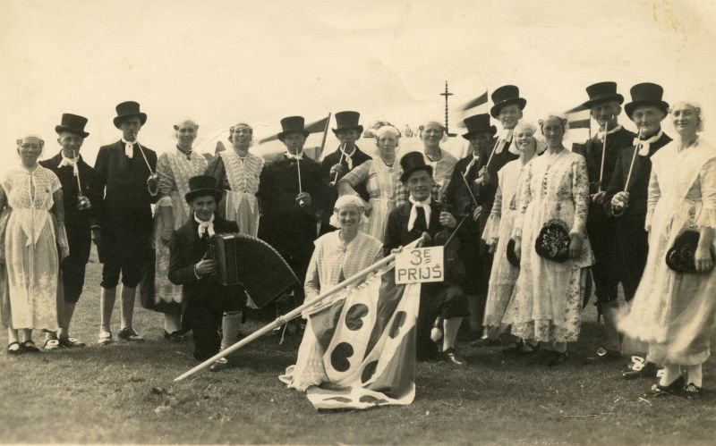 De derde prijs werd gewonnen door ‘De Skotsploech’. Er staan nogal wat dames en heren op die later mee zouden spelen in de succesvolle revue ‘Bûnte Flinters’ van Jaap Hartmans met muziek van Evert Blom.