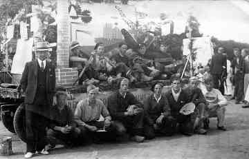 Voor de wagen: Geert Sijtsma (met hoed, hij was de chauffeur), Ruurd P. Torensma, Harm Holwerda, Minne Poutsma, Siemen de Vries, Piet Boon, Geert Sijtsma, Yme Eelkema.