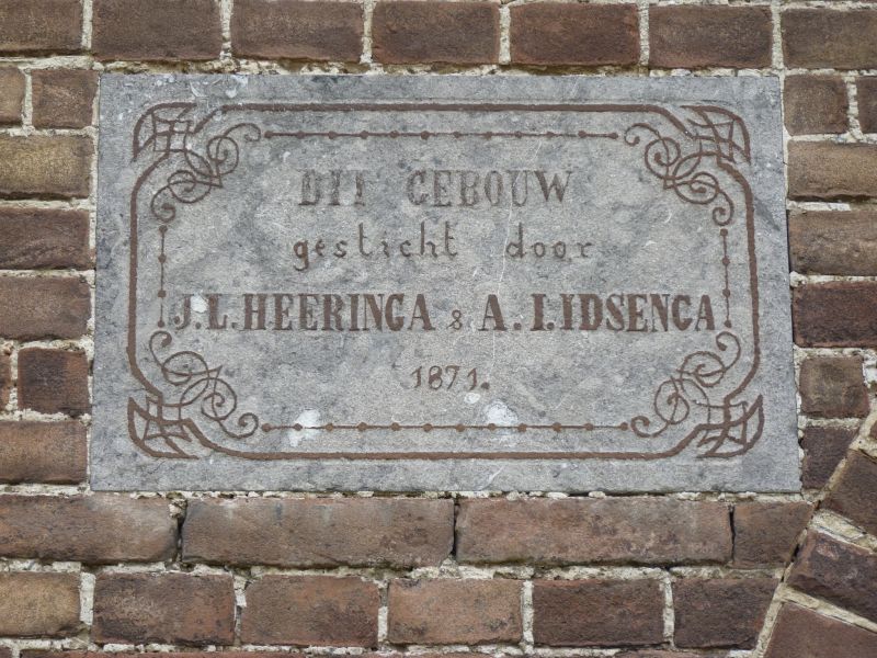 Een gedenksteensteen in de achtermuur van deze boerderij meldt dat in 1871 Jacob L. Heeringa en A.I.Idsinga dit gebouw in 1871 hebben gesticht.