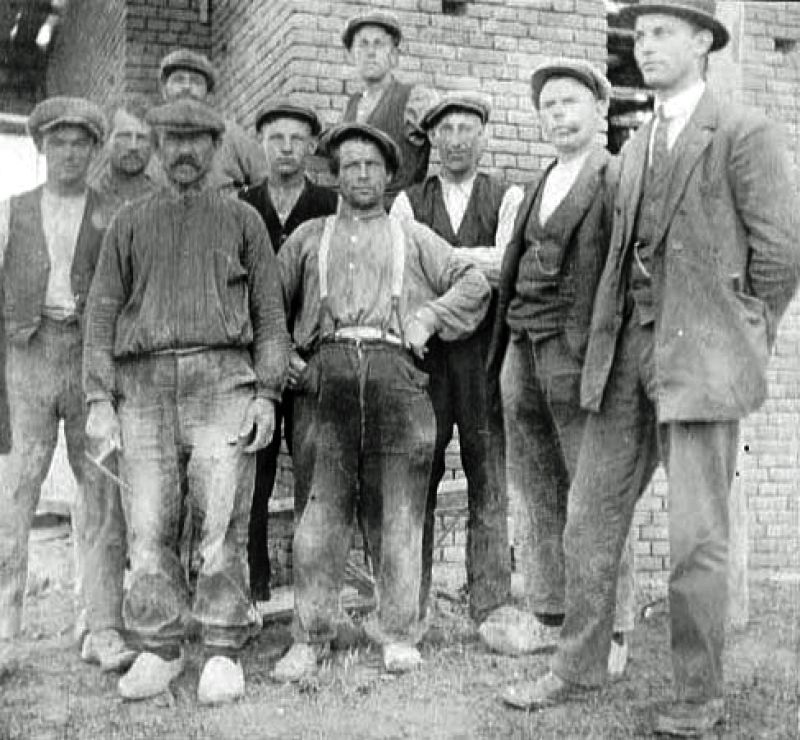 Op de tweede foto staan de mannen die de wagenmakerij en woning (ver)bouwden voor Broer Adema. Ze staan er vrijwat stoer bij. Helaas zijn er geen namen bekend, nou ja...1908