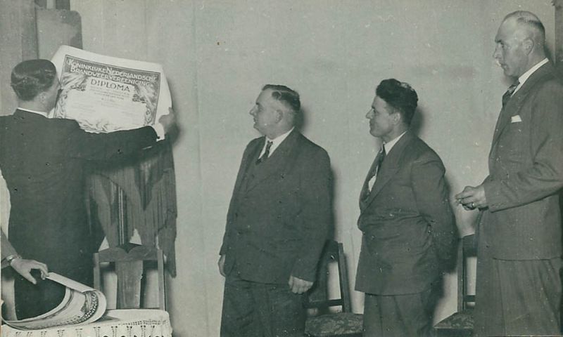 Overhandiging klok door Burgemeester W.M.v.d.H