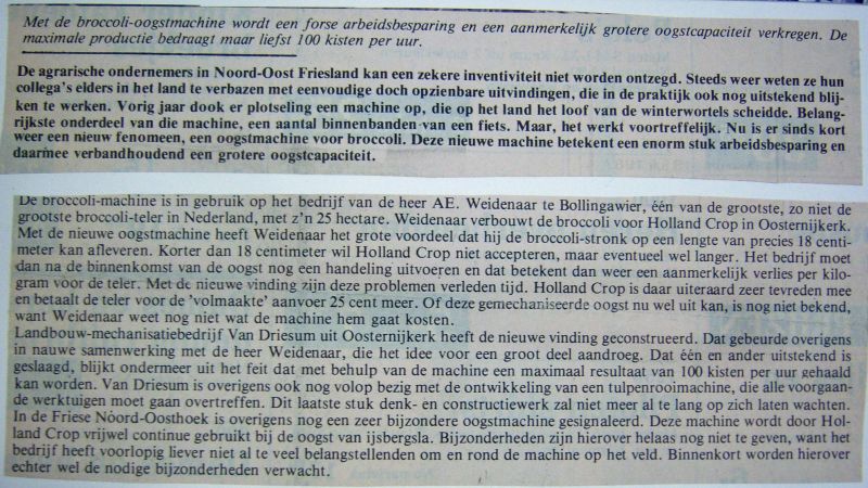 In dit krantenartikel weer een voorbeeld van de voortschrijdende ontwikkeling in de agrarische sector.