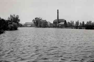 De pannenfabriek aan de overkant van de Rijn, gezien vanaf het Ponthuisje. Helem