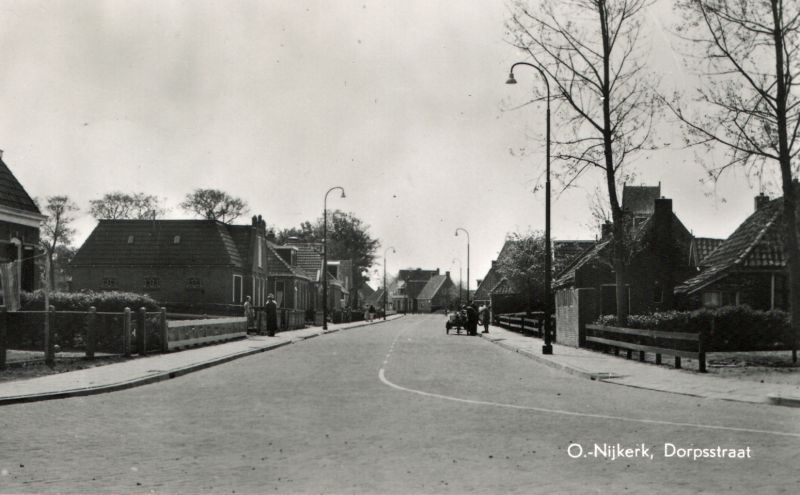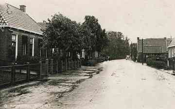 Links is nog net de boerderij van de familie Johannes en Hiltje Holwerda-Van der Velde te zien (later Aan Tabak met zijn vrachtwagens en Kooistra Installatiebedrijf), mogelijk staat de vrouw des huizes bij de homeie.