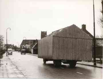 De laatste foto is heel bijzonder: een complete garage (?) op wielen ongeveer ter hoogte van de boerderij De Buorren 47, nu Boate Kooistra. De foto komt uit de krant tegelijk met een ander 'huis op wielen', namelijk Paviljoen Toxopeüs, nu Het Gouden Stek op Oostmahorn.