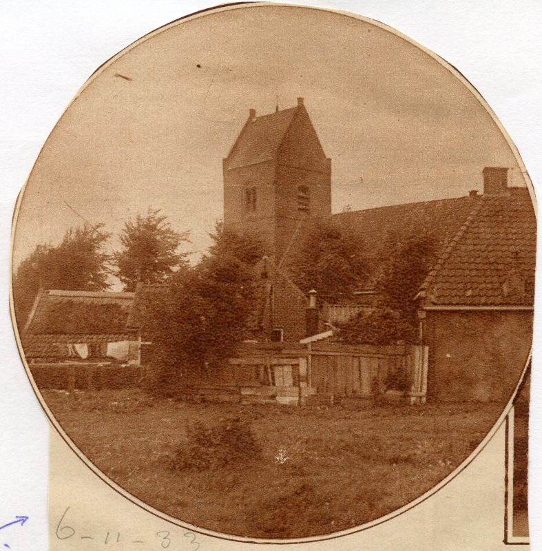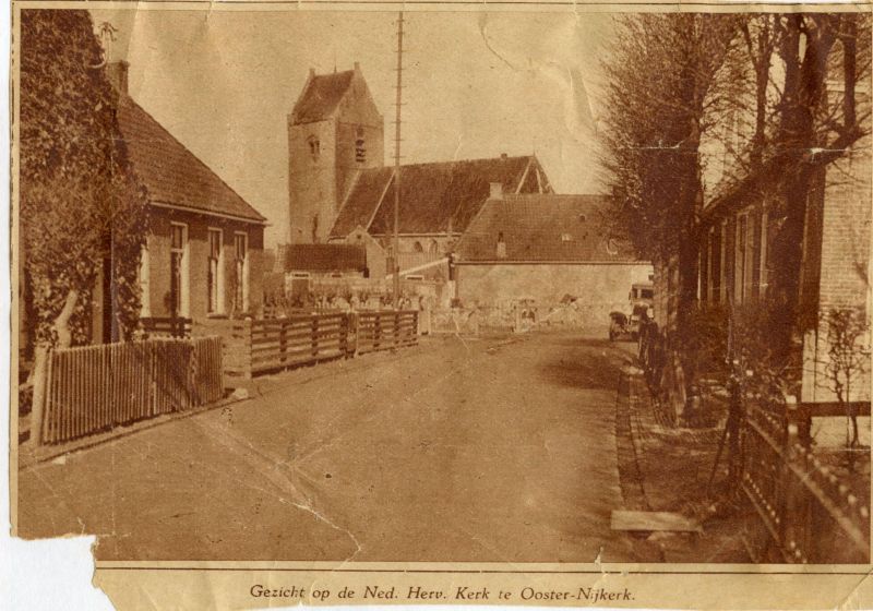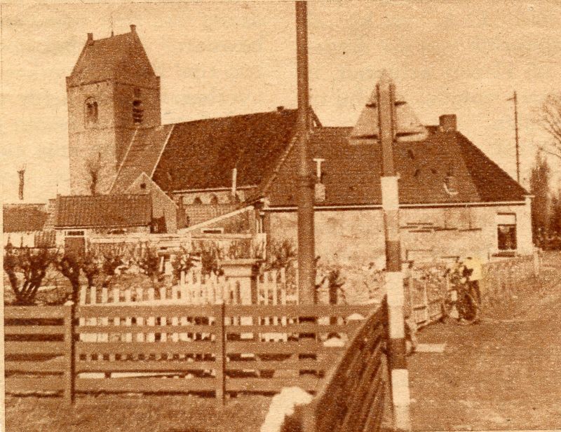 Midden op de foto (met erboven het dak van de hervormde kerk) de zuivelwinkel van Haike Kingma, tot 1956 was hier een smederij.