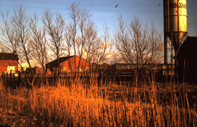 Op deze plek bevond zich tot 1988 de varkensmesterij van Siemen Miedema, de silo met voer is rechts duidelijk herkenbaar. Aan de straatkant was een ruimte afgeschut waar de varkens wat in de buitenlucht konden rondscharrelen. Dat gebeurde vaak met het van varkens kenmerkende geschreeuw, zodat langslopende wandelaars, vooral jonge kinderen weet ik uit eigen ervaring, de schrik van hun leven kregen!