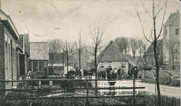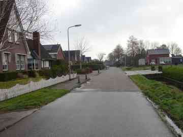 Op deze foto is De Lyts al niet klein (lyts) meer: het huis met de twee hoge deuren, gebouwd in 1876, was lange tijd het laatste gebouw in deze straat. Het is gebouwd als herberg en timmerzaak en dat is het zeker tot 1942 gebleven. De twee deuren vormden de zogenaamde “trochreed”: de herbergbezoeker kon zijn paard-met-koets aan de ene kant naar binnen rijden en door de andere deur weer naar buiten. Ook twee huizen meer naar links was een timmerzaak gevestigd. Het eerste huis links is gebouwd in 1906 en meester Gaasterland was de eerste bewoner. Het boerderijtje midden op de foto is van 1896 en werd 100 jaar later geheel afgebroken waarna de huidige woning werd gebouwd. Dat de huizen links op een weiland werden gebouwd, blijkt uit de sloot die daar nog steeds loopt; bruggetjes zorgen voor de verbinding met de weg.