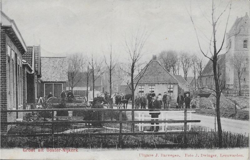Voor 1905 waren links (herberg Jousma’s) en rechts (woning Klaas Elzinga) de laatste huizen aan deze straat, voorwaar ‘een lyts ein’.