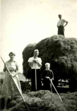 De familie Lieuwe Elzinga haalt de wintervoorraad hooi binnen van een stuk land ‘In de kouwen’ tussen Mitselwier en de brug bij Wetsens.