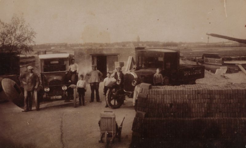 Eén van de eerste foto's van fa. de Wit. De oude auto's uit 1912 (Ford?) bezate