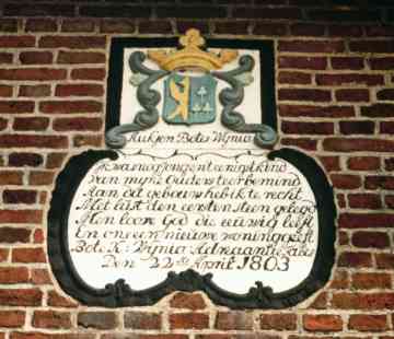 Het gebouw dat er nu staat werd in 1803 opgericht getuige de gevelsteen in de achtermuur: