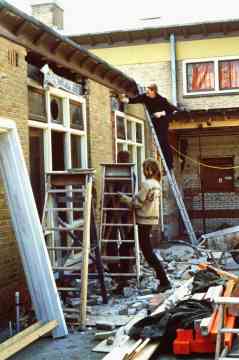 Bouwbedrijf De Haan uit Dokkum was de laagste bij de aanbesteding en zorgde voor de nieuwbouw. Hier wordt een gedeelte van de oude muur (de kozijnen) weggebroken. Deze muur werd dicht gemaakt om als nieuwe wand te dienen voor de nieuwbouw.