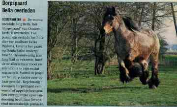 2011, foto en artikel Nieuwe Dockumer Courant dat ons dorpspaard Bella is overleden.