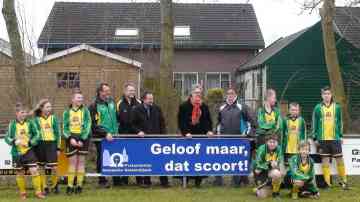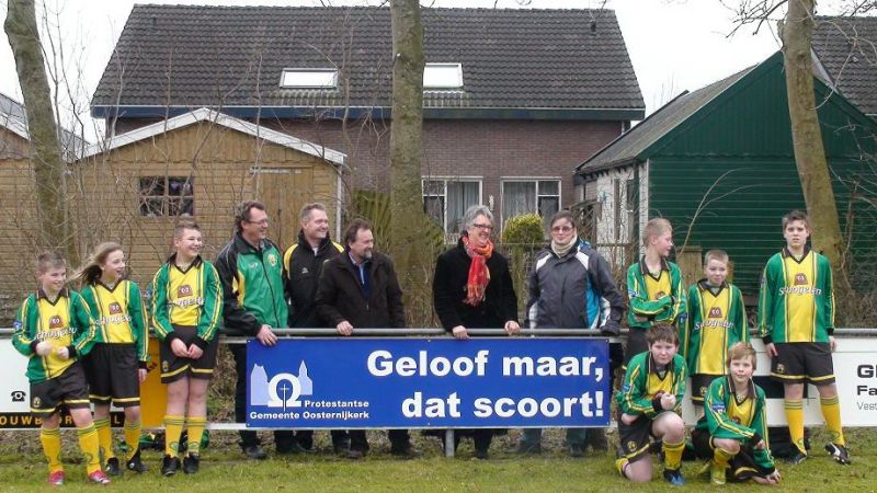 2011, zaterdagmiddag 5 februari jl. is op sportpark De Fiver in Oosternijkerk een bijzonder sponsorbord onthuld. Deze keer geen reclame voor materiële zaken, maar voor geestelijke! Het sponsorbord is nl. een initiatief van de Protestantse Gemeente Oosternijkerk. De kerk wil ook op het sportveld niet ontbreken. Zij wil sporters stimuleren hun talent te gebruiken. De sporters worden door de kerk aangemoedigd met de woorden: Geloof maar, dat scoort! Het sponsorbord is door Jan Age Wijma, de voorzitter van Ropta Boys dankbaar aanvaard.