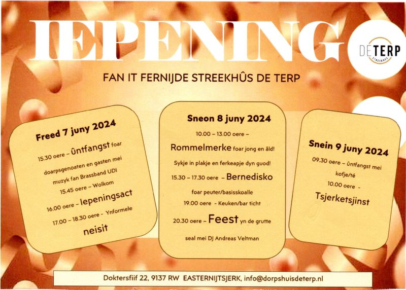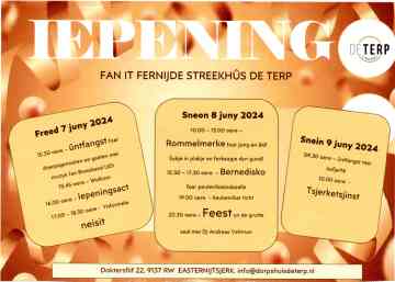 2024, Op 7 juni is de opening van Streekhûs De Terp. Het eerdere dorpshuis is flink vernieuwd, gemoderniseerd en technisch sterk verbeterd. Klaar om nu Streekhûs te worden.