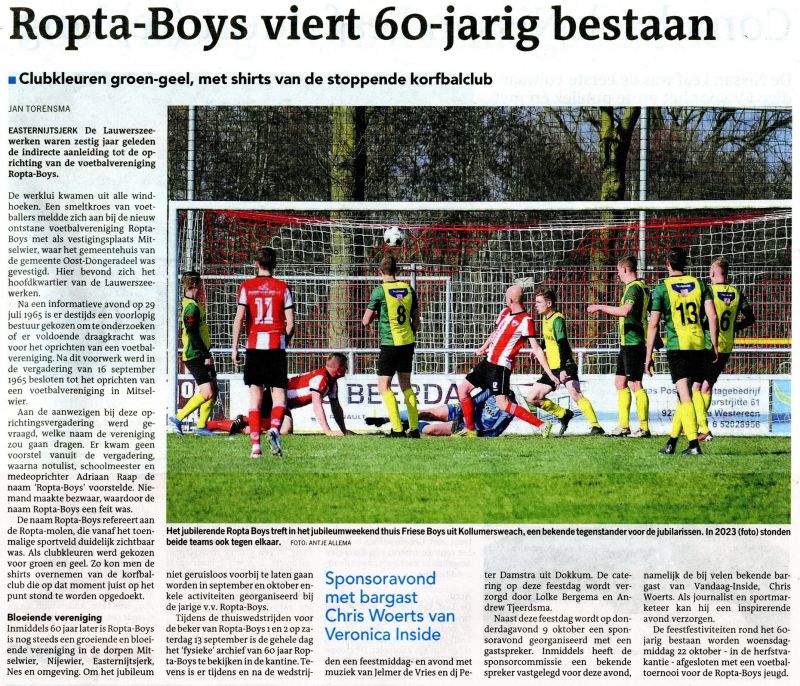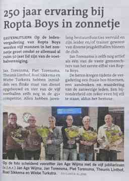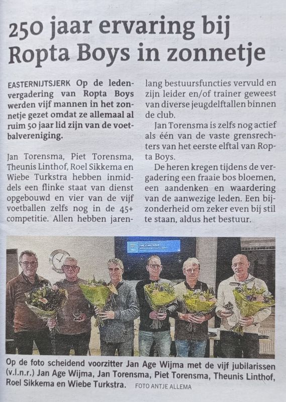 2025, Ropta Boys is bijna wekelijks in het nieuws, nu namen ze aan het eind van seizoen 2024/2025 afscheid van drie clubiconen; Geert Linthof, Tsjitsger Braaksma en Johannes de Groot. In 2017 / 2018 speelden zij mee in het promotie elftal naar de derde klas.