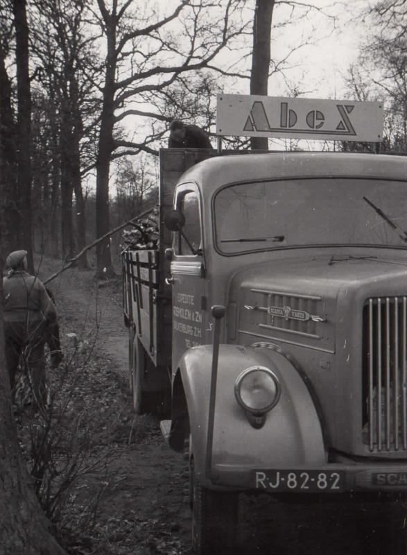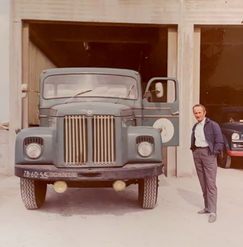 Cor van Dijk poseert hier naast een vrachtauto van Rosmolen. Waarschijnlijk is d