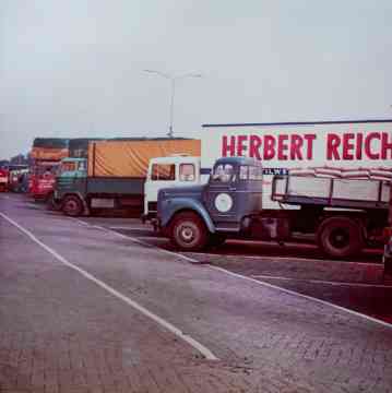 De vrachtwagen van Aad Rosmolen waar ook hier Cor van Dijk staat te poseren.