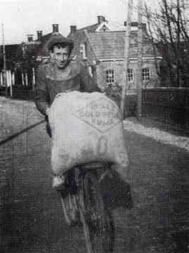 Op de tweede foto is dan ook zoon Jan de Boer te zien die met zijn transportfiets waarschijnlijk steenkolen vervoert naar een klant. Hij fietst op De Buorren ter hoogte van de Hervormde pastorie. Rechts achter de A-paal is de fietsenmakerij van Rozendal te zien, gebouwd in 1925.