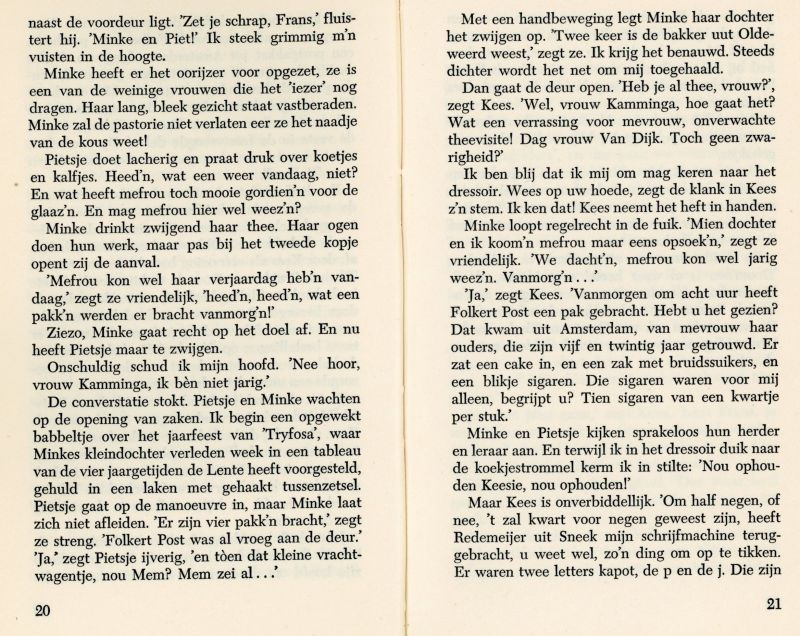 Hieronder is het hoofdstuk weergegeven waarin de pastorie als een ‘Glazen Huis’ wordt beschreven en de nieuwsgierigheid van sommige dorpsbewoners een hoofdrol speelt, maar dan op een humoristische manier verwerkt. Vooral een beginzin als ‘Als ik ooit nog eens mijn memoires ga schrijven, zal het eerste deel, handelend over Nijsterweerd, als titel dragen ‘Leven zonder geheimen’. In dat verhaal speelt de nieuwsgierigheid wel een hoofdrol, maar blijft de beschrijving luchtig en niet aanstoot gevend. Als het boekje nog ergens te krijgen is, is dat een aanrader!