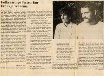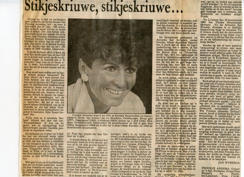 Marten en Froukje makken tegearre in reis nei Denemarken dêr’t se it paad bjuster rekken. Nei lang omdangeljen fûnen se lykwols in sliepplak, mar iten hiene se net by har. Dop-apenuten moasten dy deis foar it jûnsmiel soargje. Dy doppen op it dekbêd wiene de oanlieding foar har earste ferhaal. Letter stjoerde se in ferhaaltsje nei wikeblêd Margriet, dat ek publisearre waard. En wurke se mei oan de Fryske Libelle.