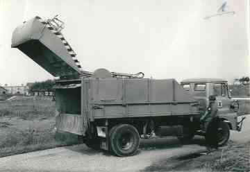 De nieuwe vuilnisauto wordt getest.