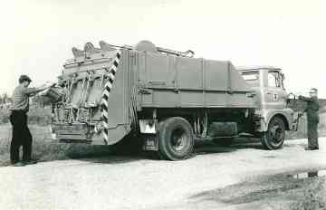 De nieuwe vuilniswagen wordt getest.