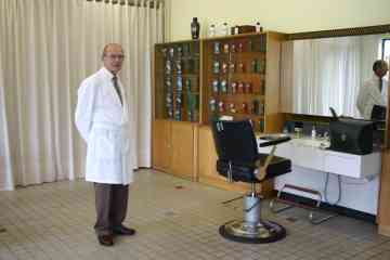 (2) Trots poseert kapper Gerrit in zijn kersverse modern ingerichte kapsalon aan