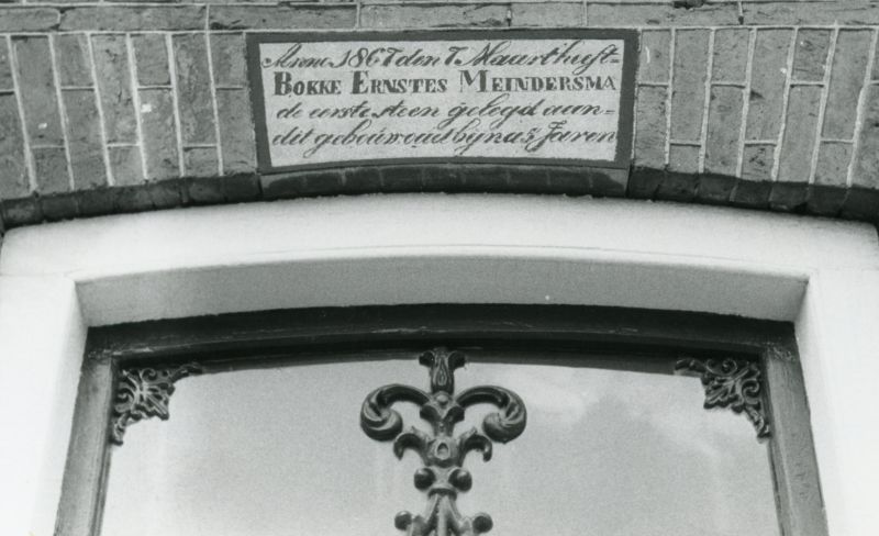 Op deze plek was tot 150 jaar geleden een ‘moestuin’, behorende bij de bakkerij aan De Buorren, het laatst bewoond door bakker Van Dellen. In 1867 bouwde de toenmalige bakker Bokke Ernstes Meindersma het huis op de foto, tien jaar later zou hij er zelf wonen toen zijn zoon Ernst Bokkes de bakkerij overnam.