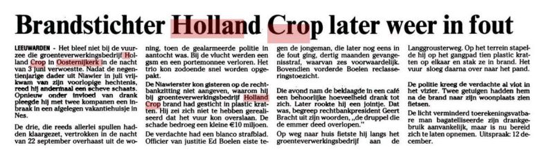 Aan het eind van zijn bestaan had Holland Crop het financieel lastig, vanwege het korte groeiseizoen en het bedrijf zat ver weg. De vervoerskosten werden te hoog.