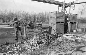 Er waren drie slamachines om te oogsten, waar 25 man per machine op werkten.