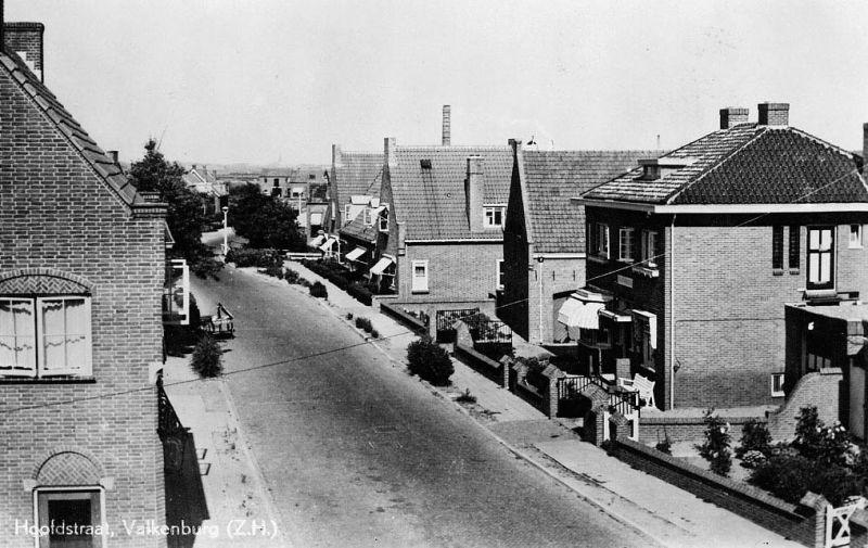 De Hoofdstraat, gezien vanaf de Katwijkerweg. Links het gemeentelijk museum woni