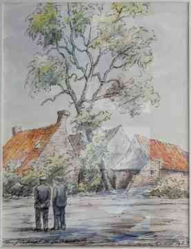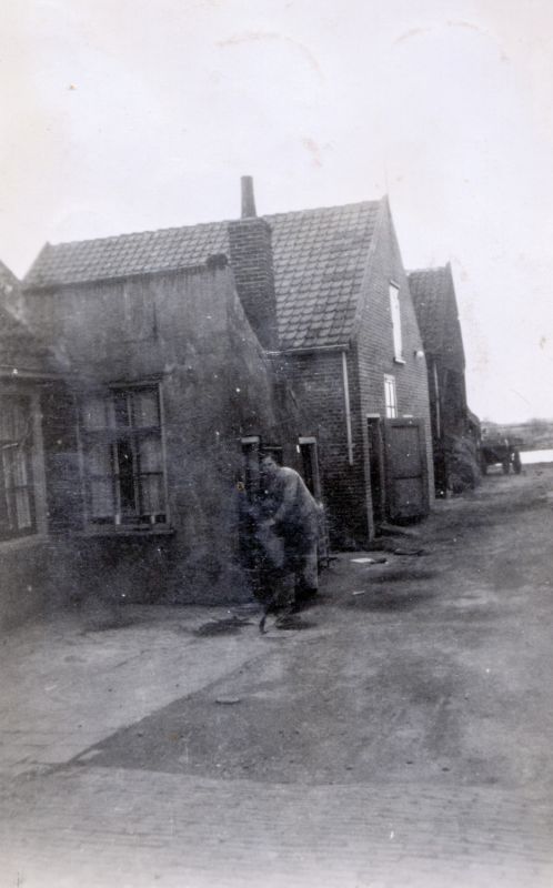 Henk Bos bij het oude huisje van Kees Ouwersloot, de melkboer, aan de Hoofdstraa
