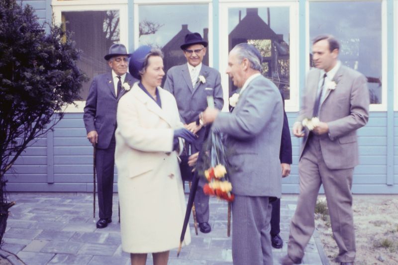 Op achtergrond de bijgebouwde barakken voor huisvesting van het gemeentekantoor
