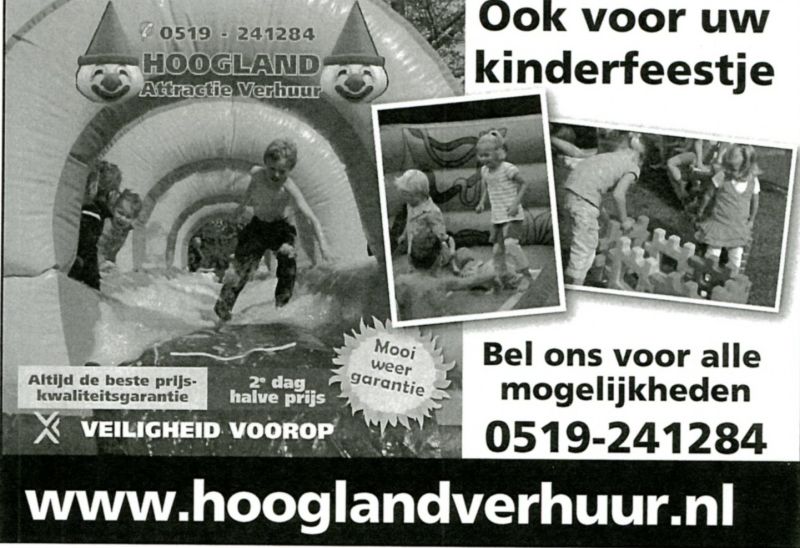 Nu zijn er zo’n 70 luchtkussens / survivalbanen en een groot aantal andere attracties in de verhuur. De zomerperiode is met de dorpsfeesten de drukste tijd van het jaar. Maar ook buurtverenigingen en Oranjeverenigingen weten de weg naar Hoogland te vinden. Ook worden er indoor-evenementen verzorgd, met of zonder begeleiding.
