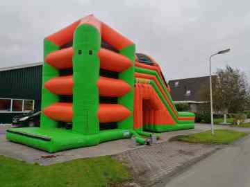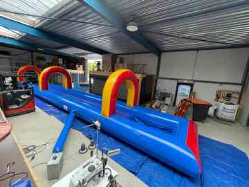 Het zwaarste springkussen is later verkocht, het bleek teveel werk als deze vies binnen kwam.