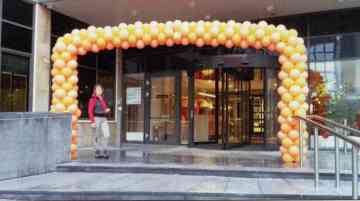 2017, Janet maakt een mega grote ballonnenboog voor de ING